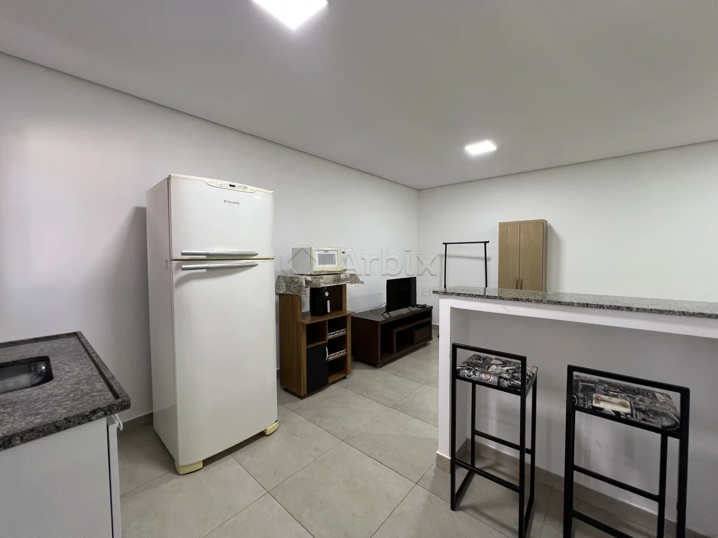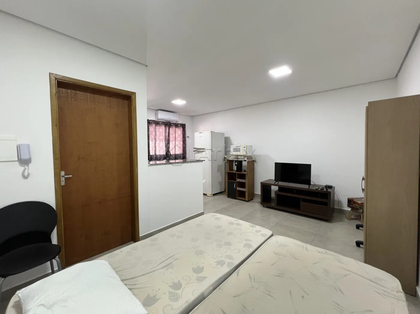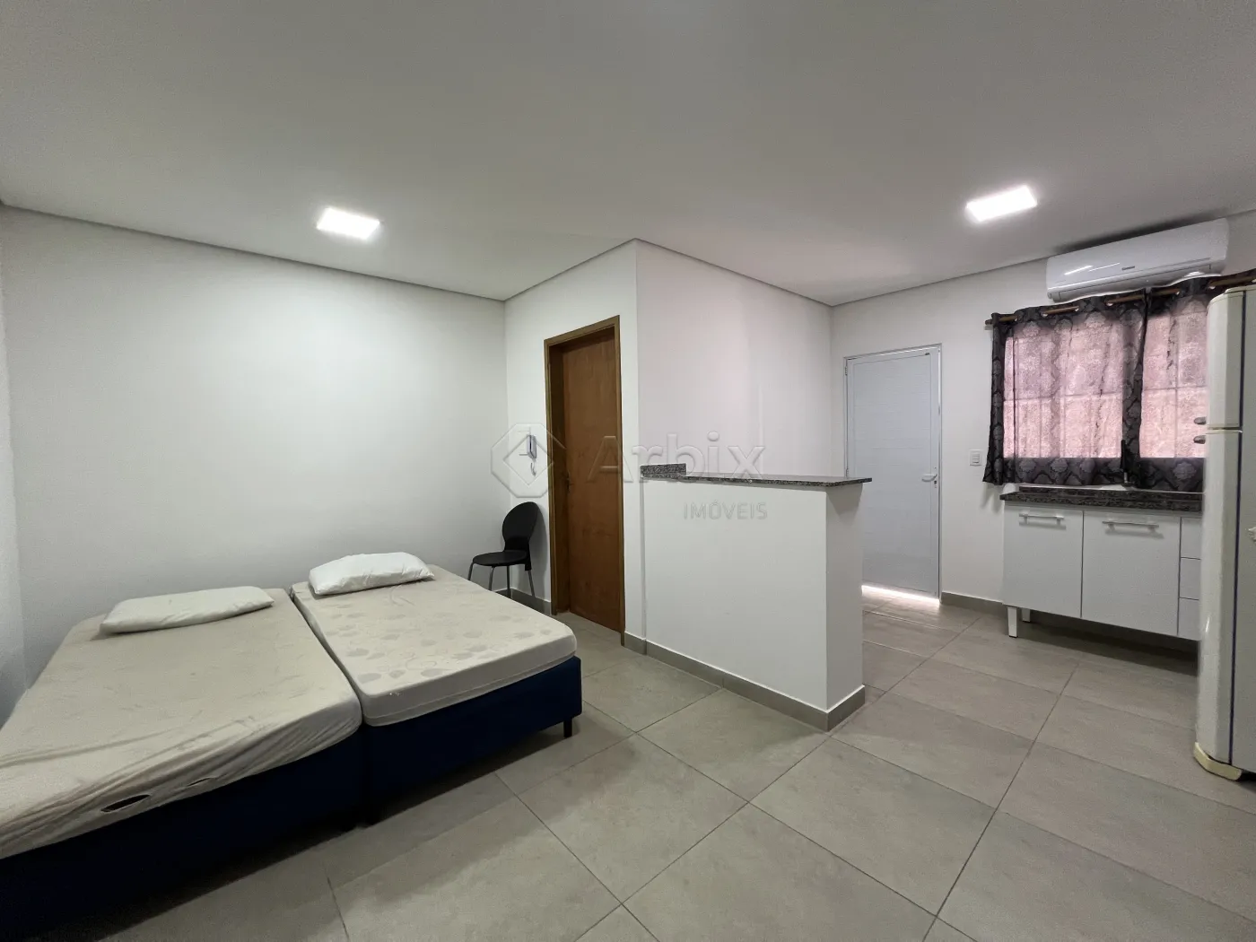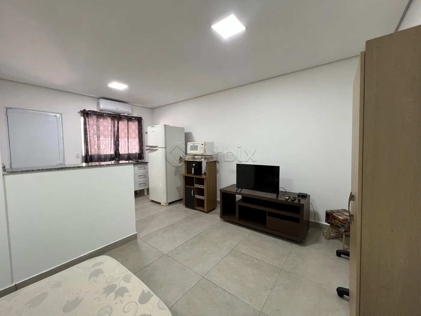 Este imóvel possui 25M², oferecendo sala de estar e de jantar integradas com a cozinha com armários, e quarto. Contém ar condicionado, pontos eletrônicos e de internet.