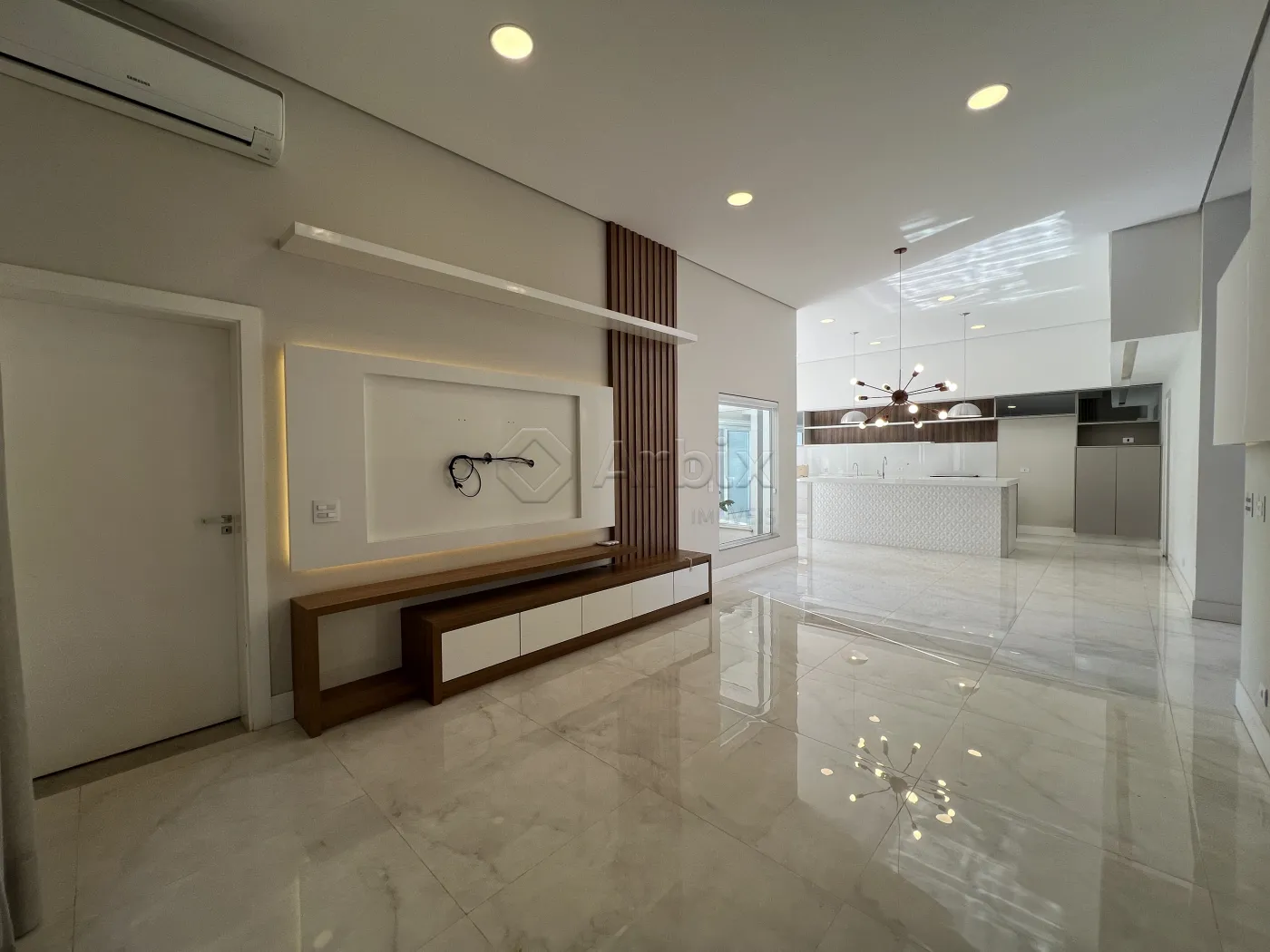 Logo ao entrar, você sente a leveza dos ambientes integrados: salas de estar e jantar que se conectam com a cozinha planejada, ideal para receber seus familiares e amigos com charme e elegância.