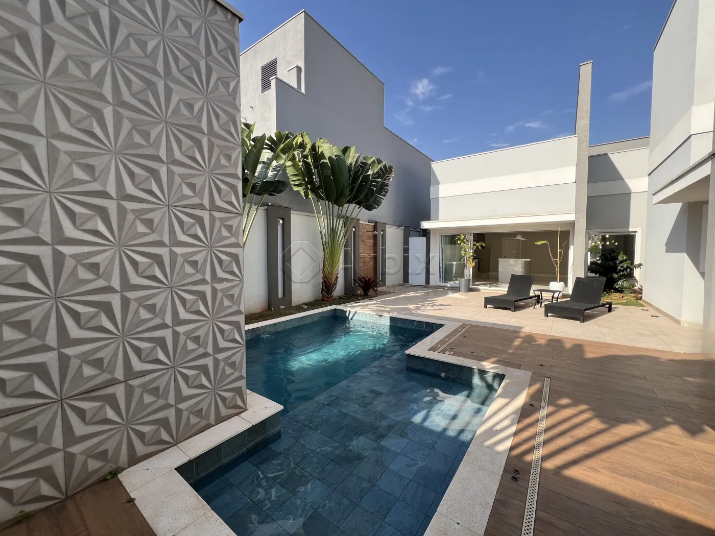O espaço de lazer externo, com piscina aquecida, hidromassagem e cascata, convida a momentos únicos com a família.