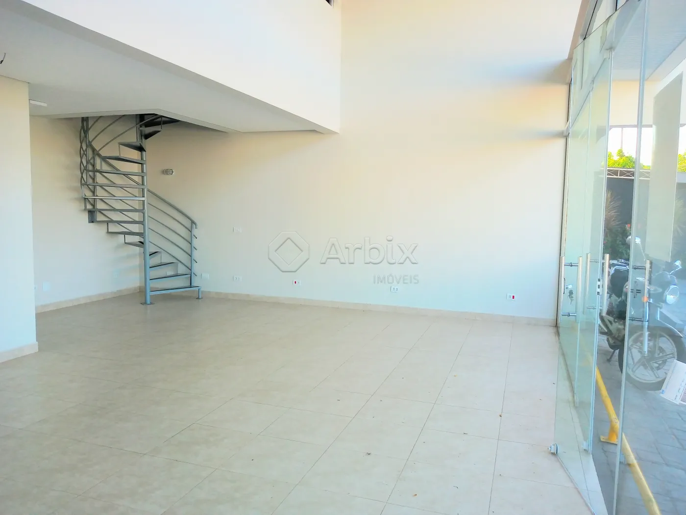O imóvel possuí Sala ampla com acabamento em porcelanato e blindex, portas e janelas em blindex e mezanino, escada caracol.