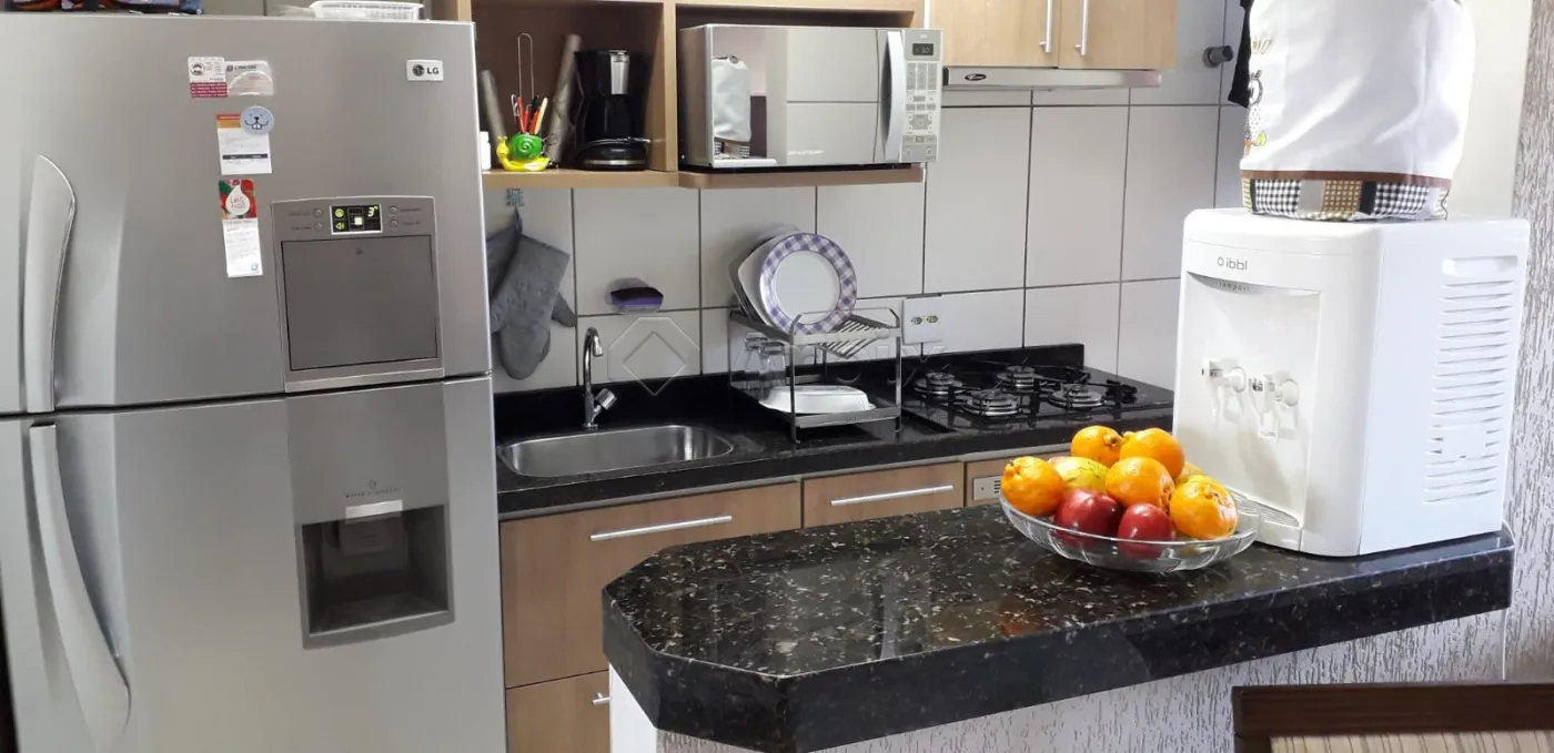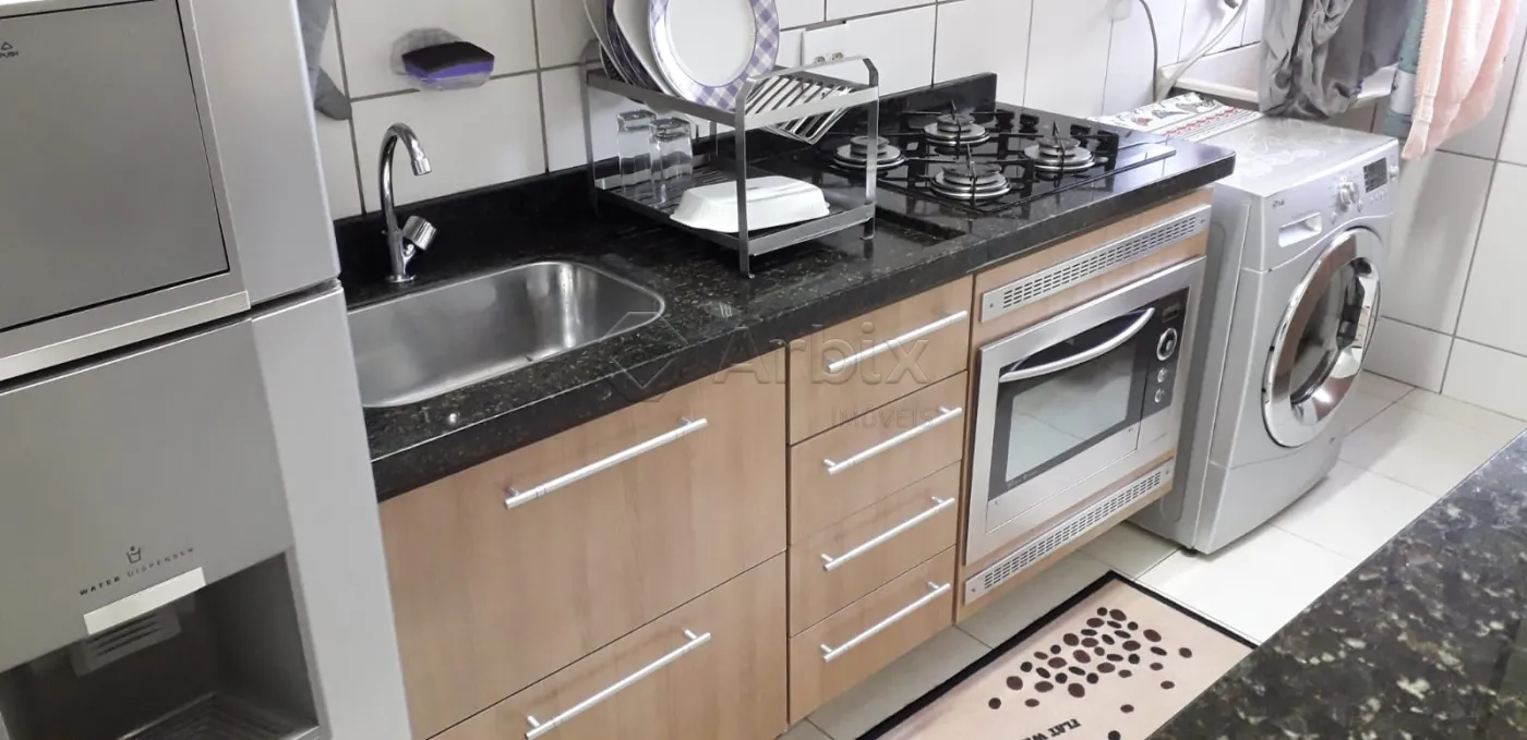 O imóvel conta com 50 m² de área construída, sendo seu acabamento em piso frio, armários, cozinha com com forno e cooktop e área de serviço coberta.
