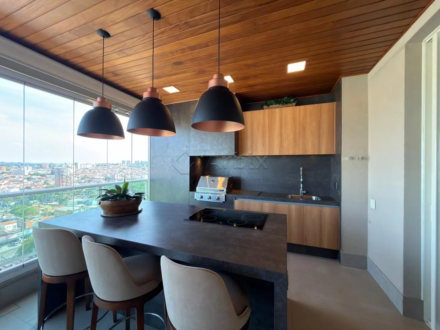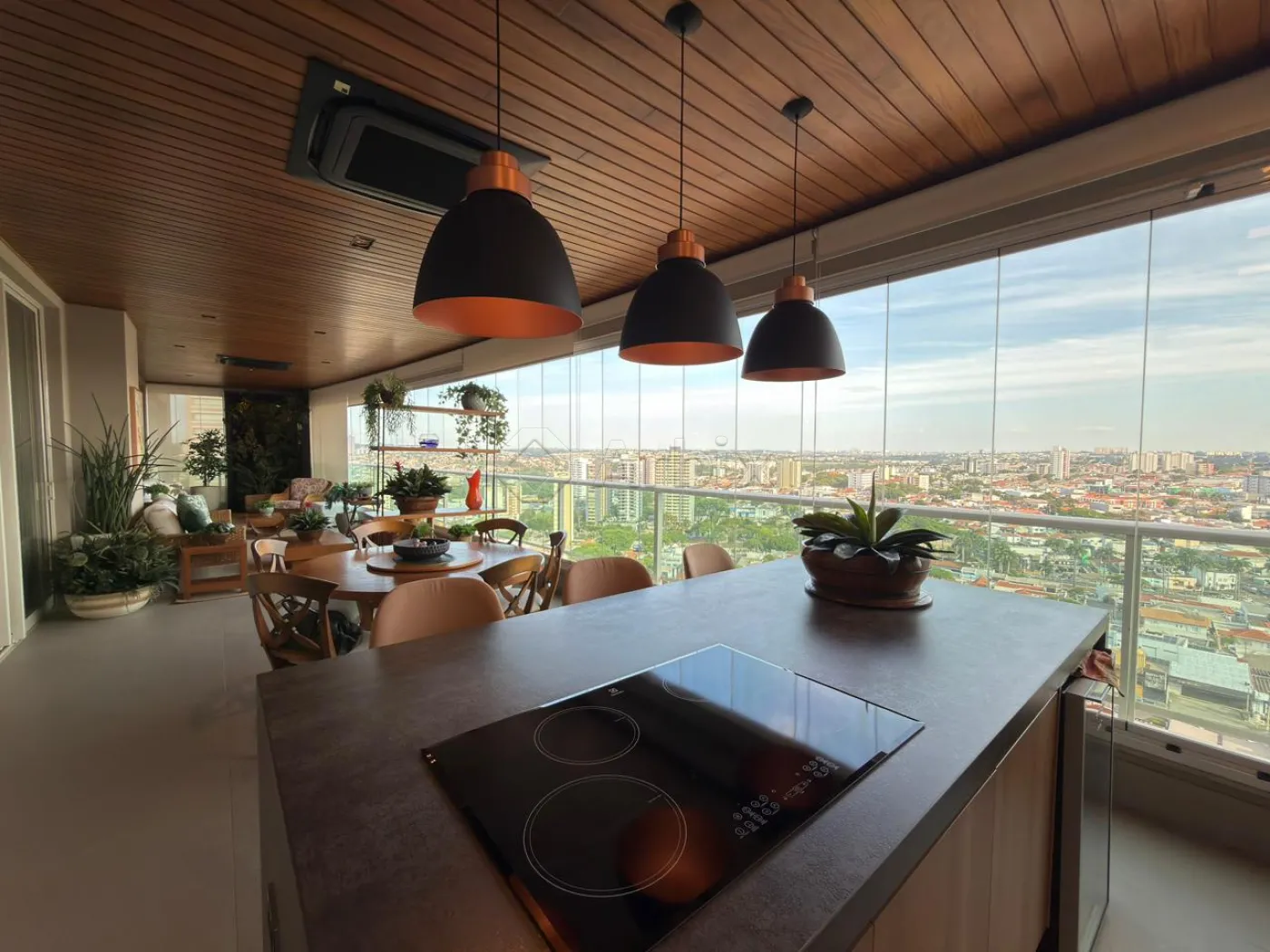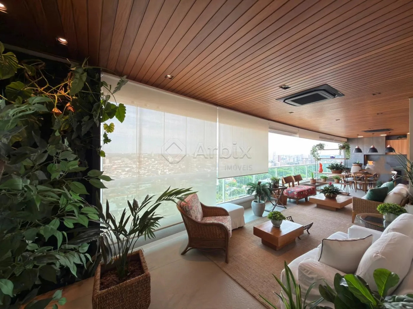 A varanda gourmet, fechada em vidro e envolta por uma delicada área verde com sistema de irrigação automatizado e controlado remotamente, apresenta churrasqueira elétrica e vista privilegiada, tornando-se um verdadeiro refúgio urbano.