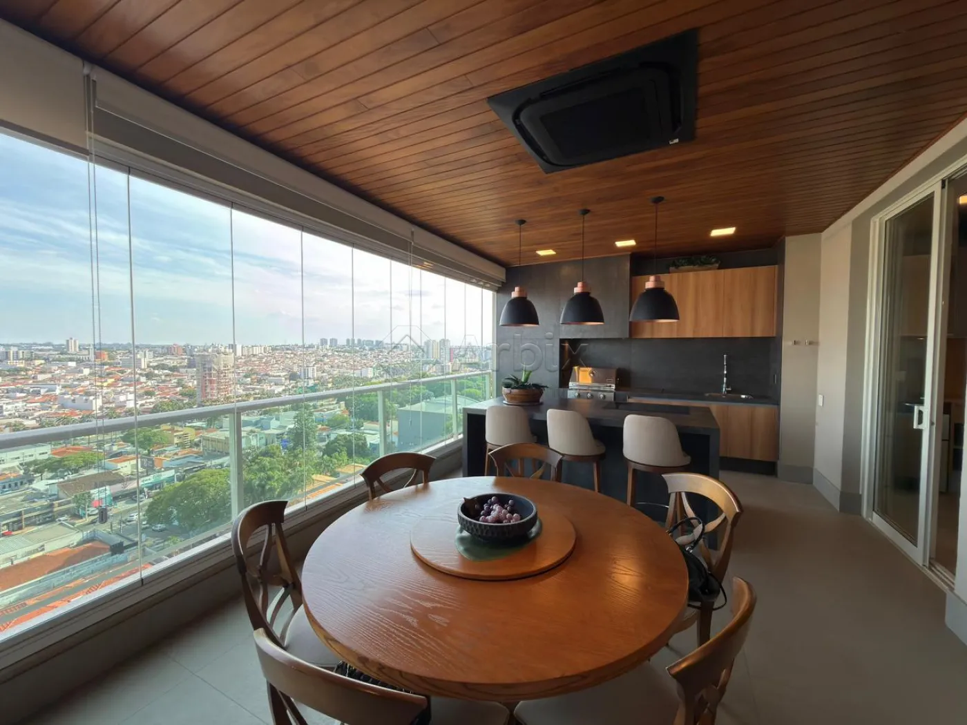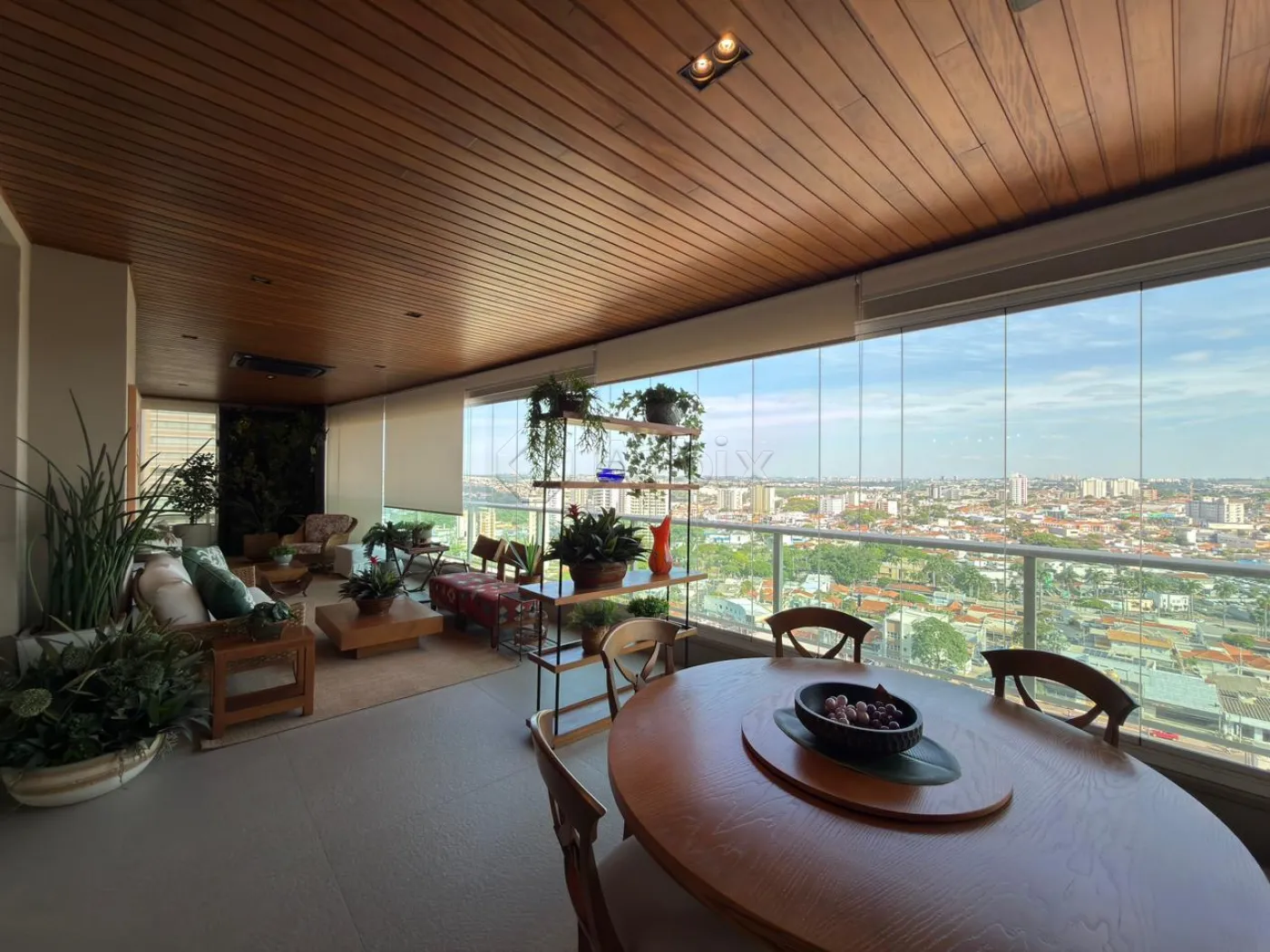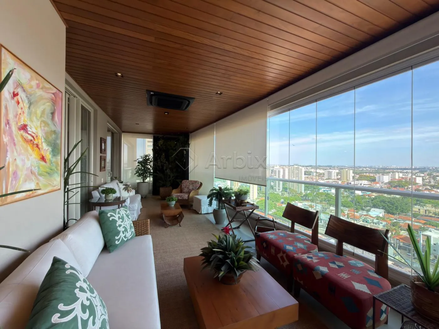 A varanda gourmet, fechada em vidro e envolta por uma delicada área verde com sistema de irrigação automatizado e controlado remotamente, apresenta churrasqueira elétrica e vista privilegiada, tornando-se um verdadeiro refúgio urbano.