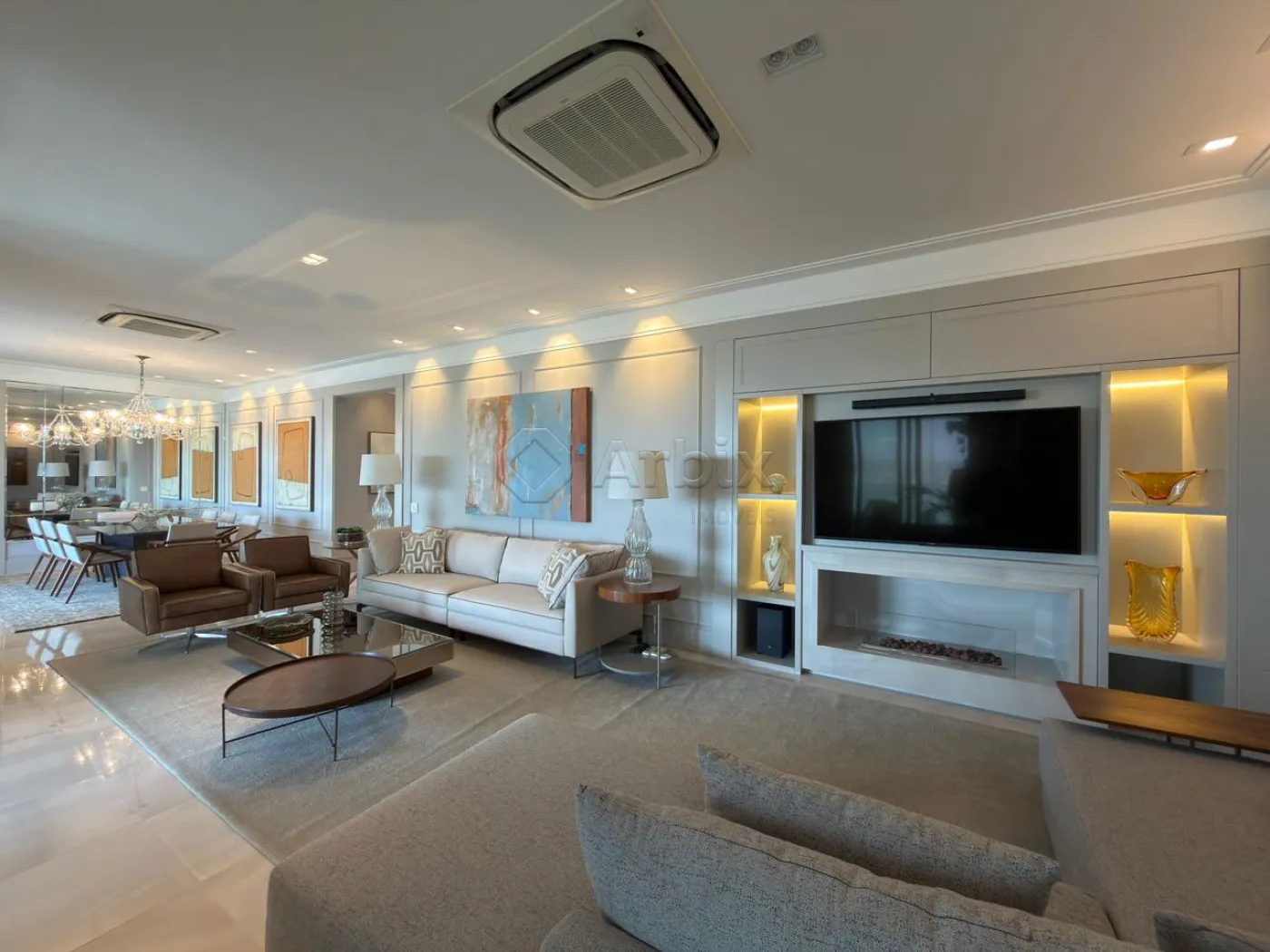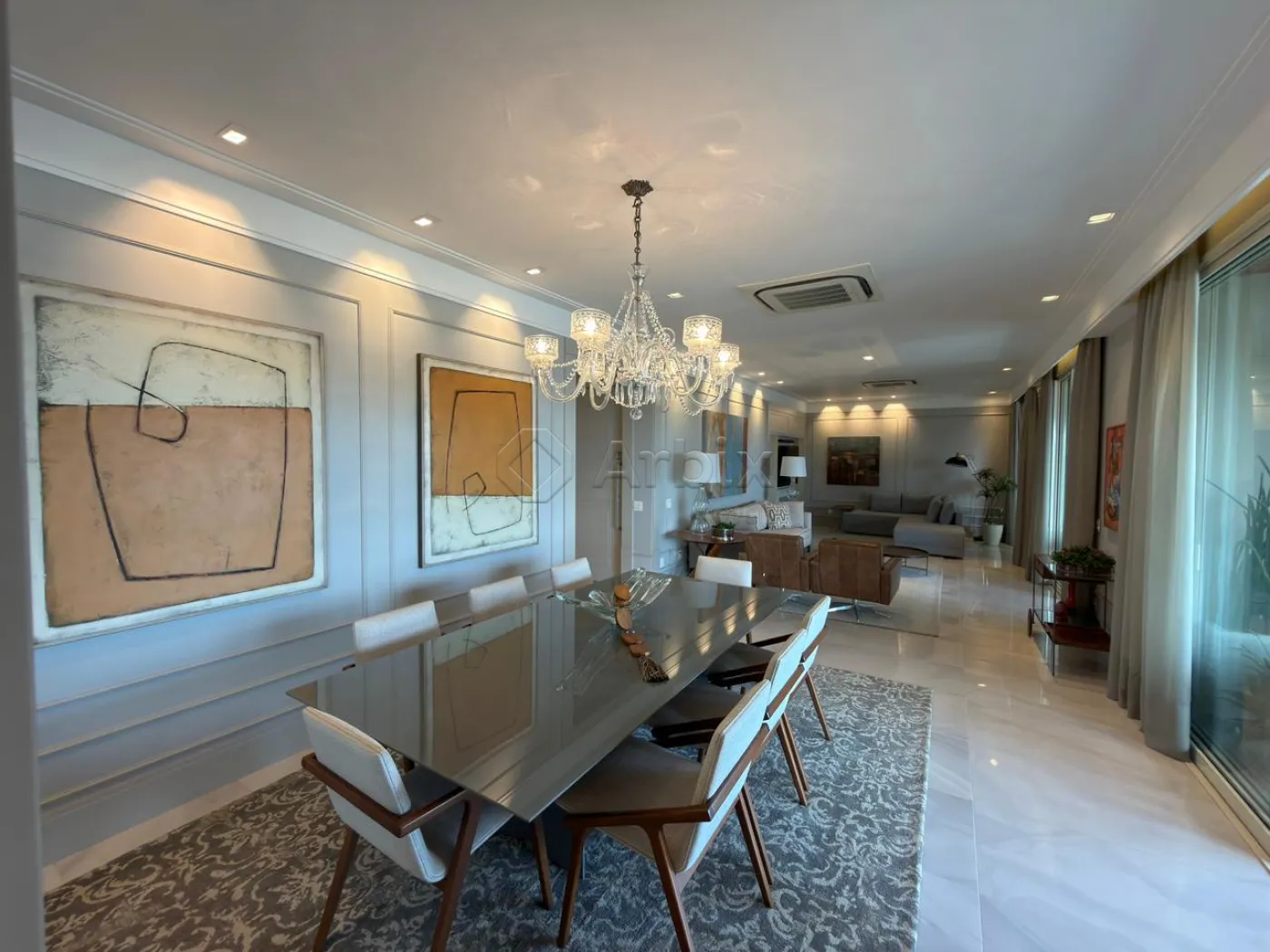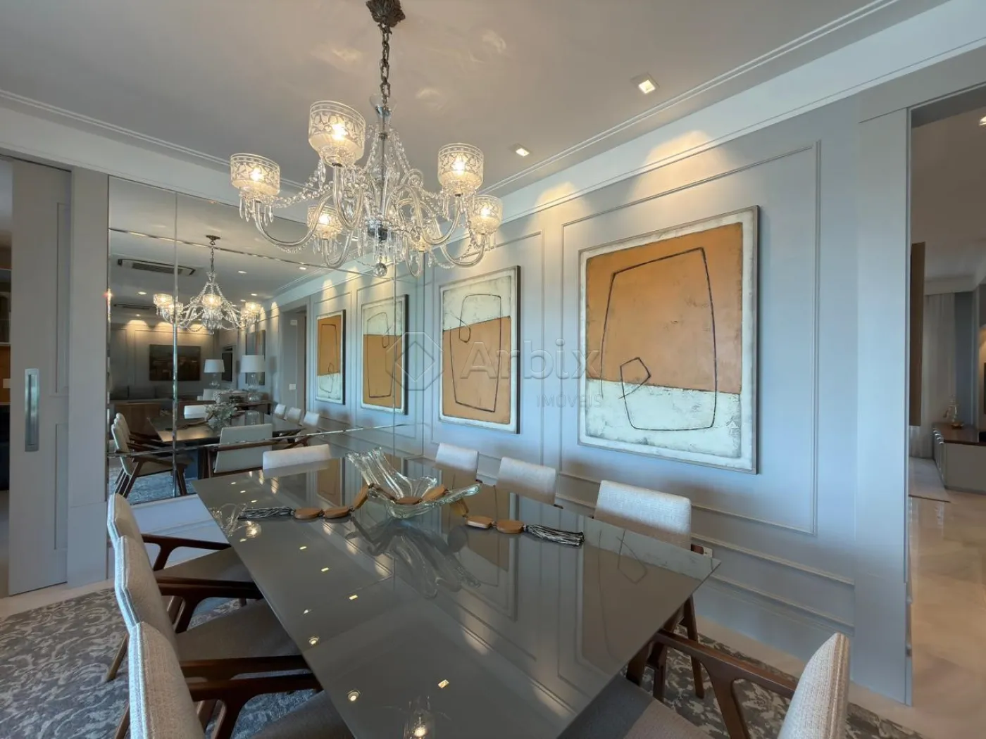 Este magnífico apartamento totalmente mobiliado oferece 332m² de elegância distribuídos em ambientes amplos, integrados e cuidadosamente planejados para uma experiência de viver única.