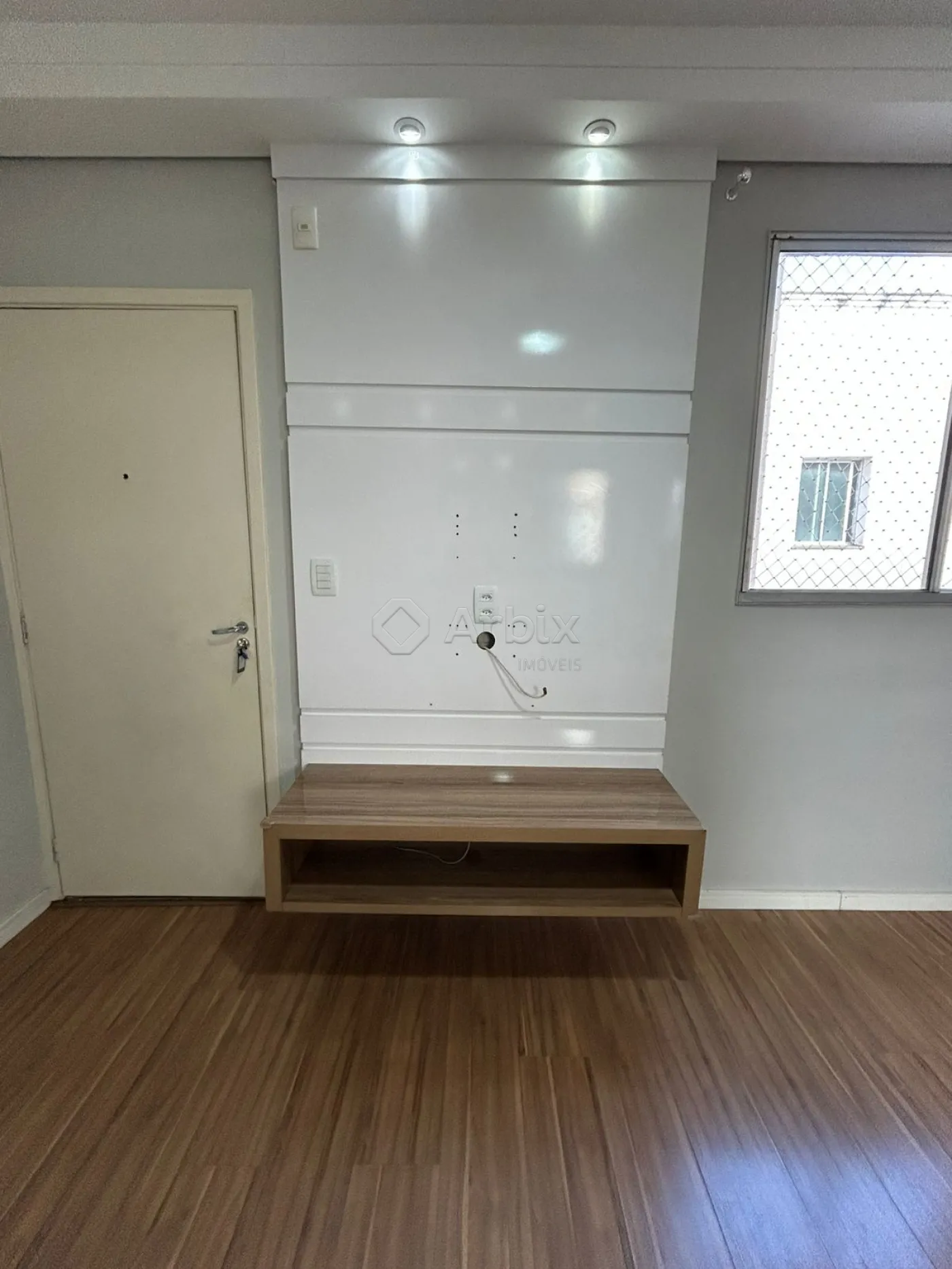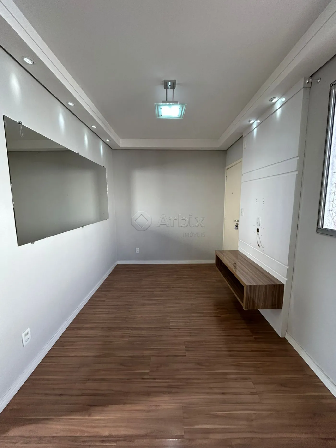 O imóvel conta com sala dois ambientes integrada com a cozinha e área de serviço.
