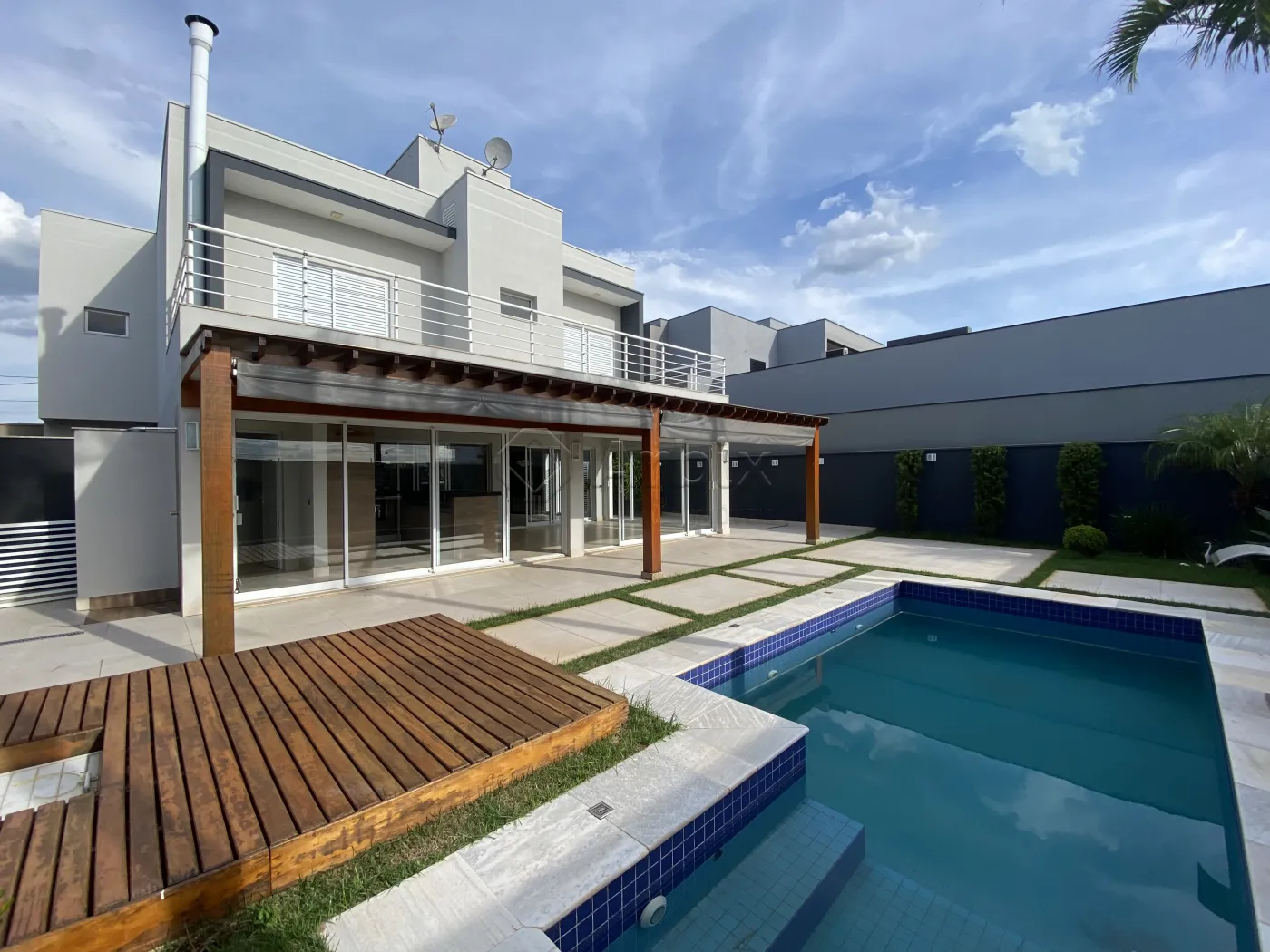 O imóvel dispõe de 330M² de construção distribuídos em sala de estar e de jantar integradas com a cozinha planejada com forno, cooktop e coifa, despensa, escritório, área gourmet com churrasqueira, piscina e área de serviço.