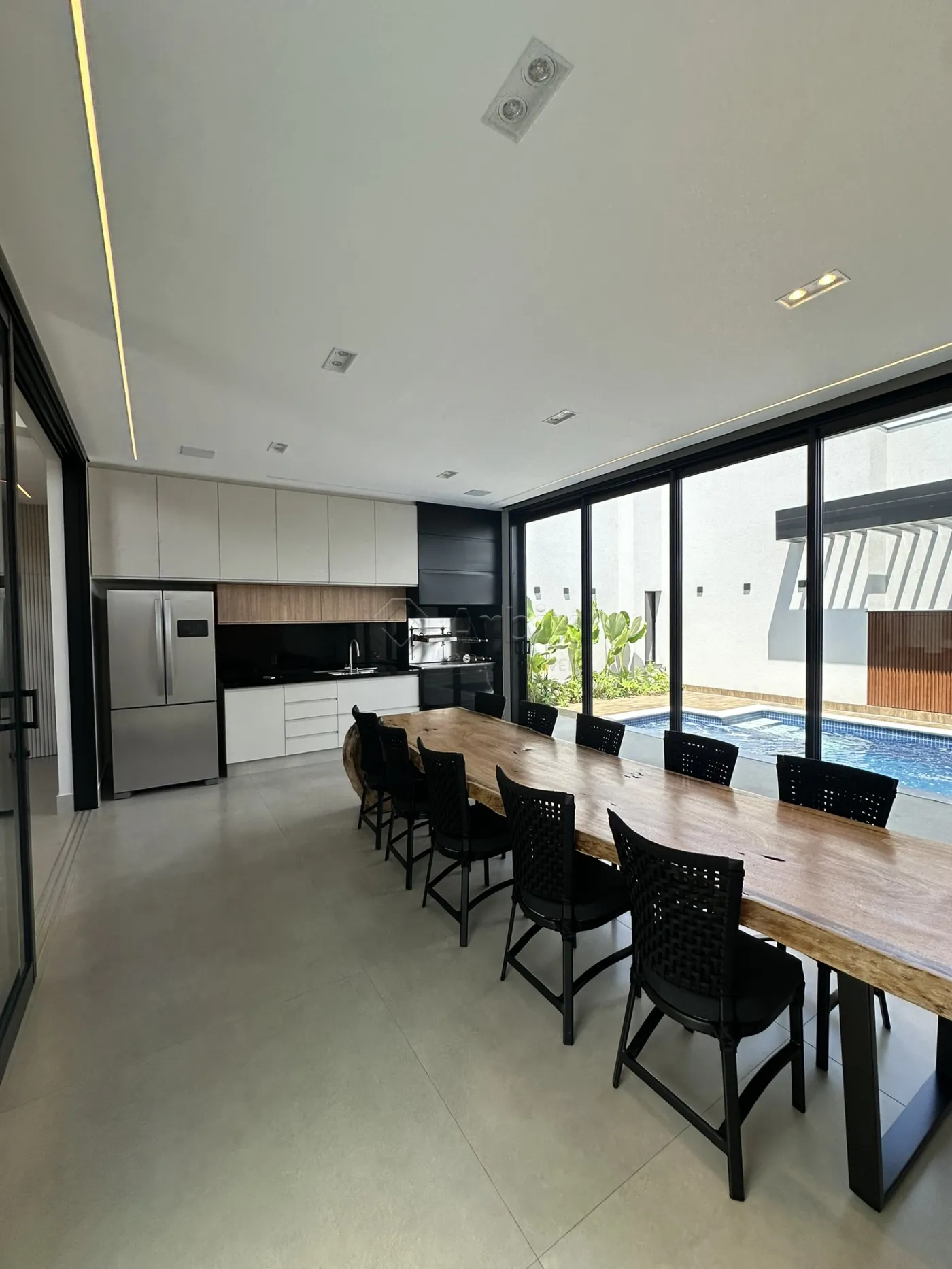 Esta casa oferece 450M² de terreno e 297M² de construção, sendo dispostos em ampla sala de estar e de jantar integradas com a cozinha toda planejada no qual inclui, cooktop, forno embutido e microondas, despensa, espaço gourmet com geladeira Brastemp, churrasqueira, mesa cascata com 10 lugares,som JBL com 4 caixas de som embutidas no teto, piscina aquecida com hidro. Área de serviço equipada com lava e seca programável a distancia.
