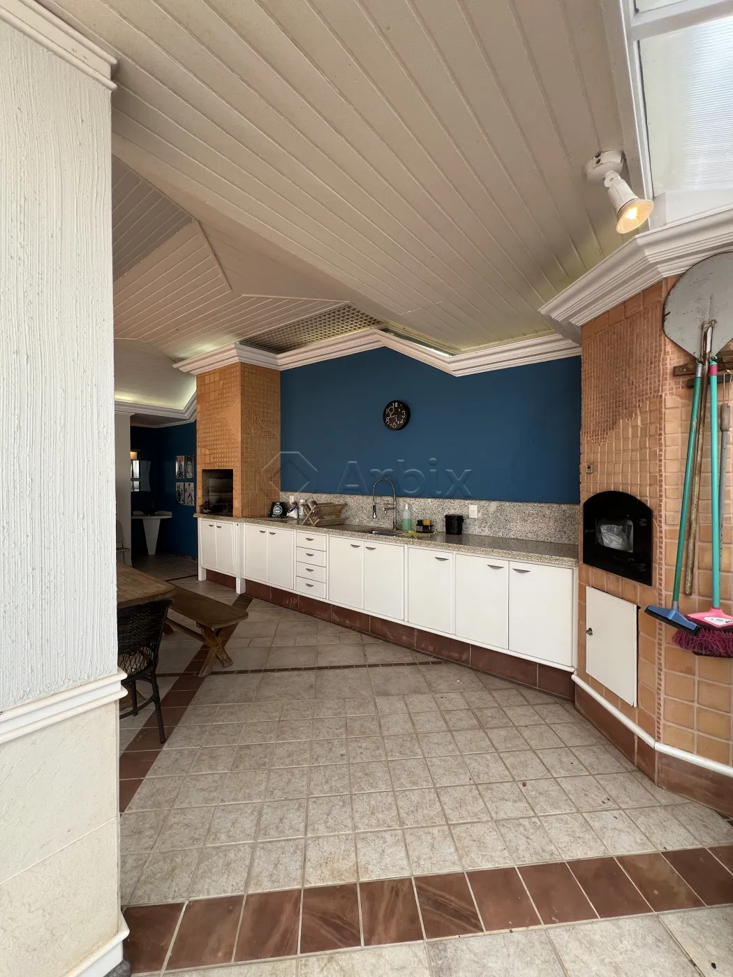 O imóvel dispõe de 467M² distribuídos em salas de estar e de jantar, cozinha com cooktop, depurador de ar, forno e lava-louças, área gourmet com churrasqueira e forno para pizza, piscina, quintal e área de serviço coberta.