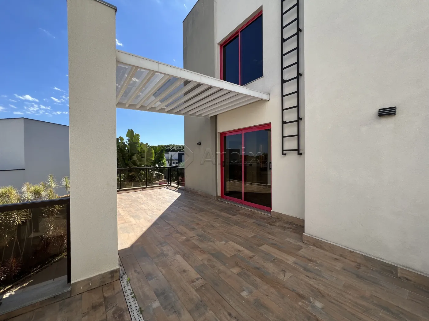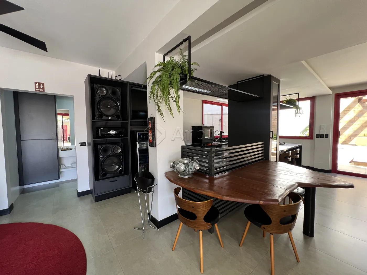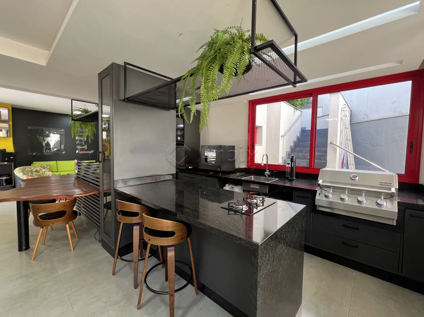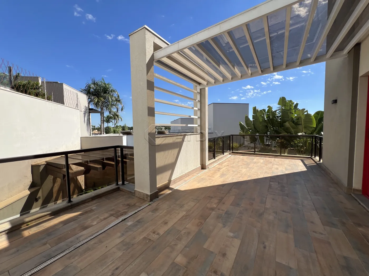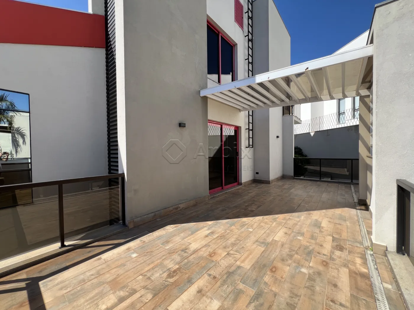 Na área externa, o imóvel dispõe de um amplo quintal e um sofisticado pergolado em madeira com jacuzzi, criando um refúgio privativo para momentos de relaxamento.