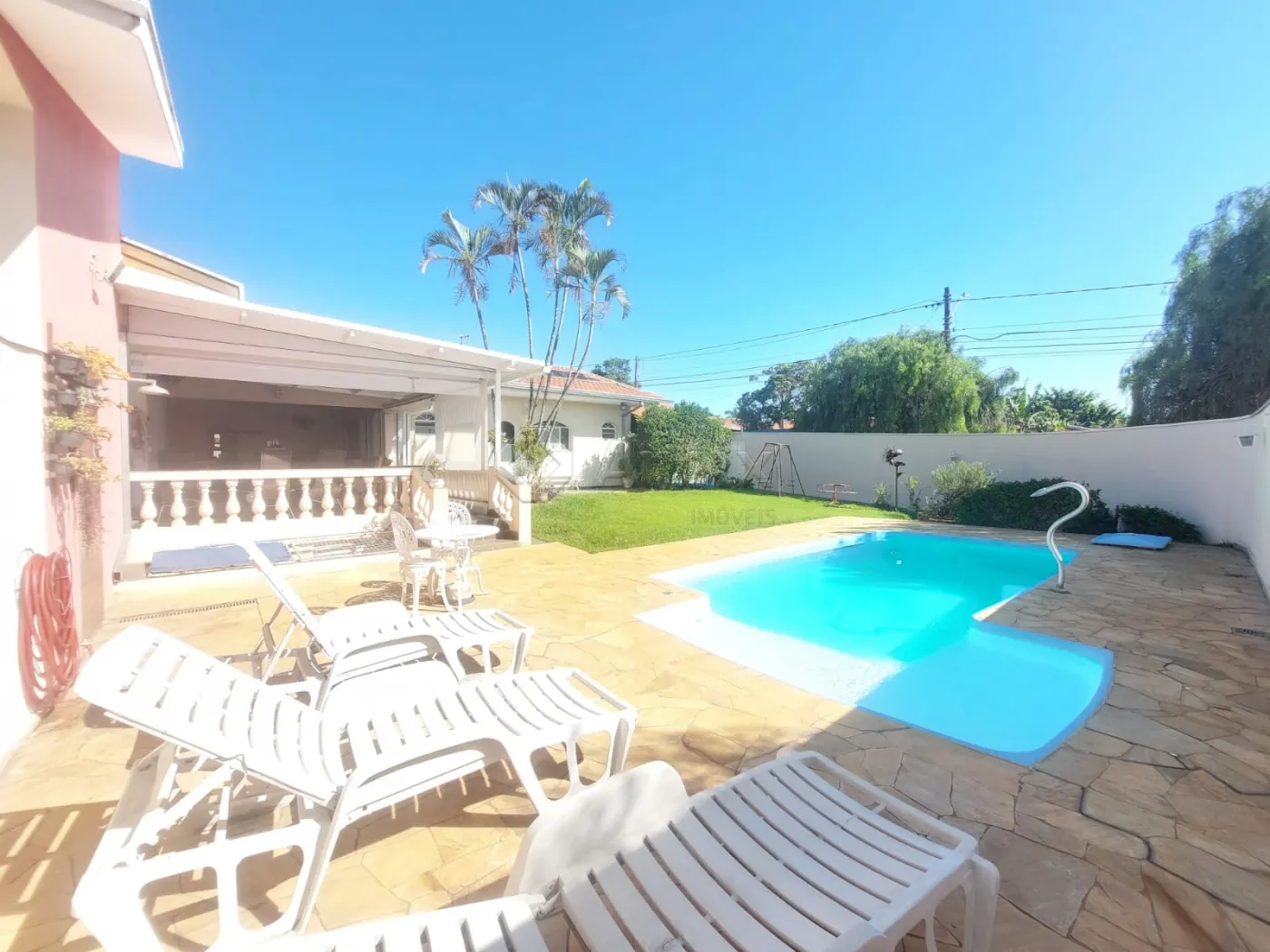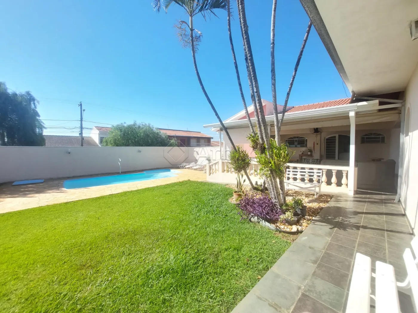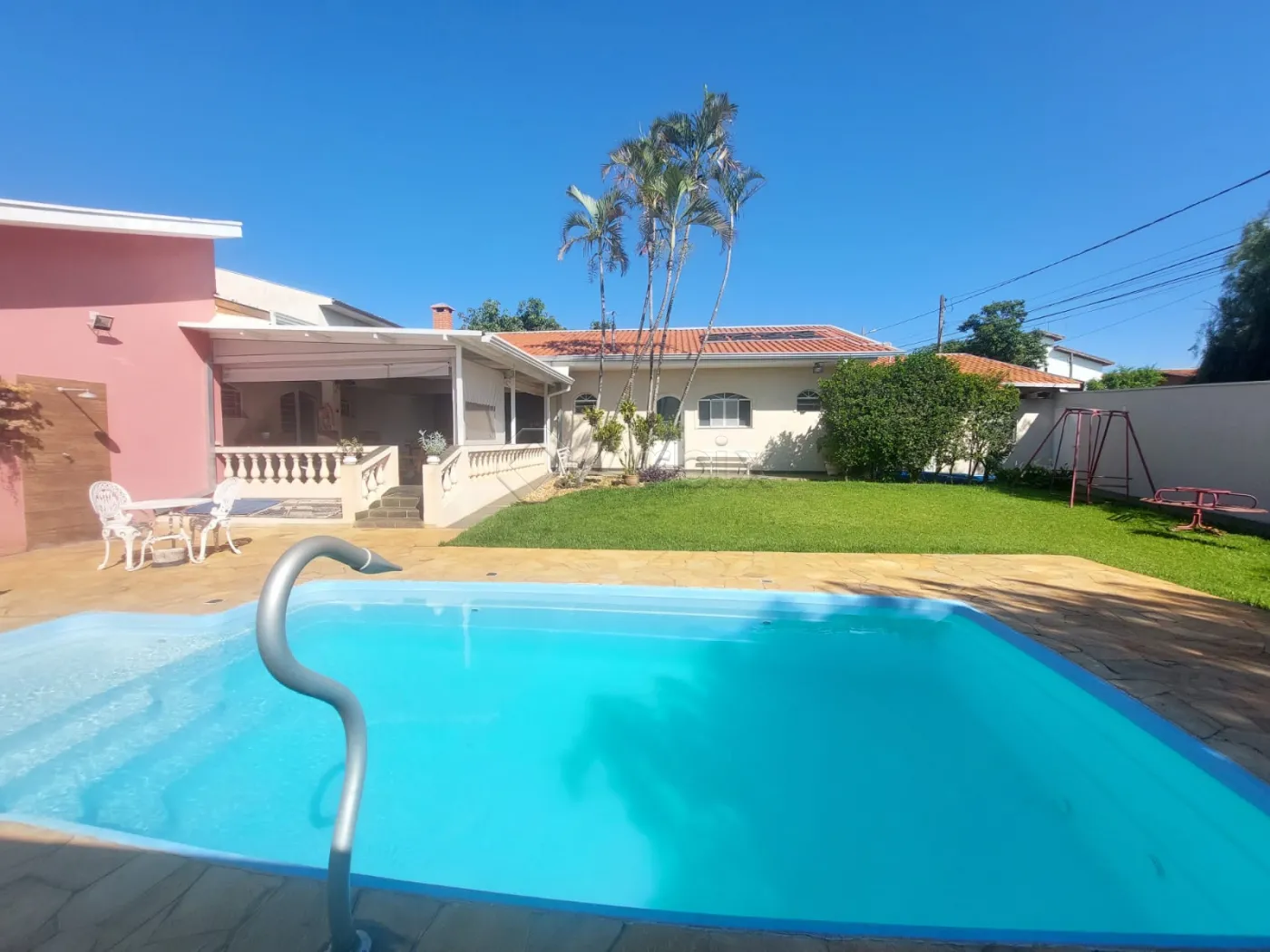 Esta casa tem 220m2 de construção e 583m2 de terreno. Possui o dormitório com suite e ar condicionada e os demais com ventilador. Sala de estar com dois ambientes e ventilador, cozinha planejada, lavanderia, Área de lazer completa com piscina aquecida com cascata, churrasqueira, pia com armário e ventiladores, banheiro. Casa com piso frio.