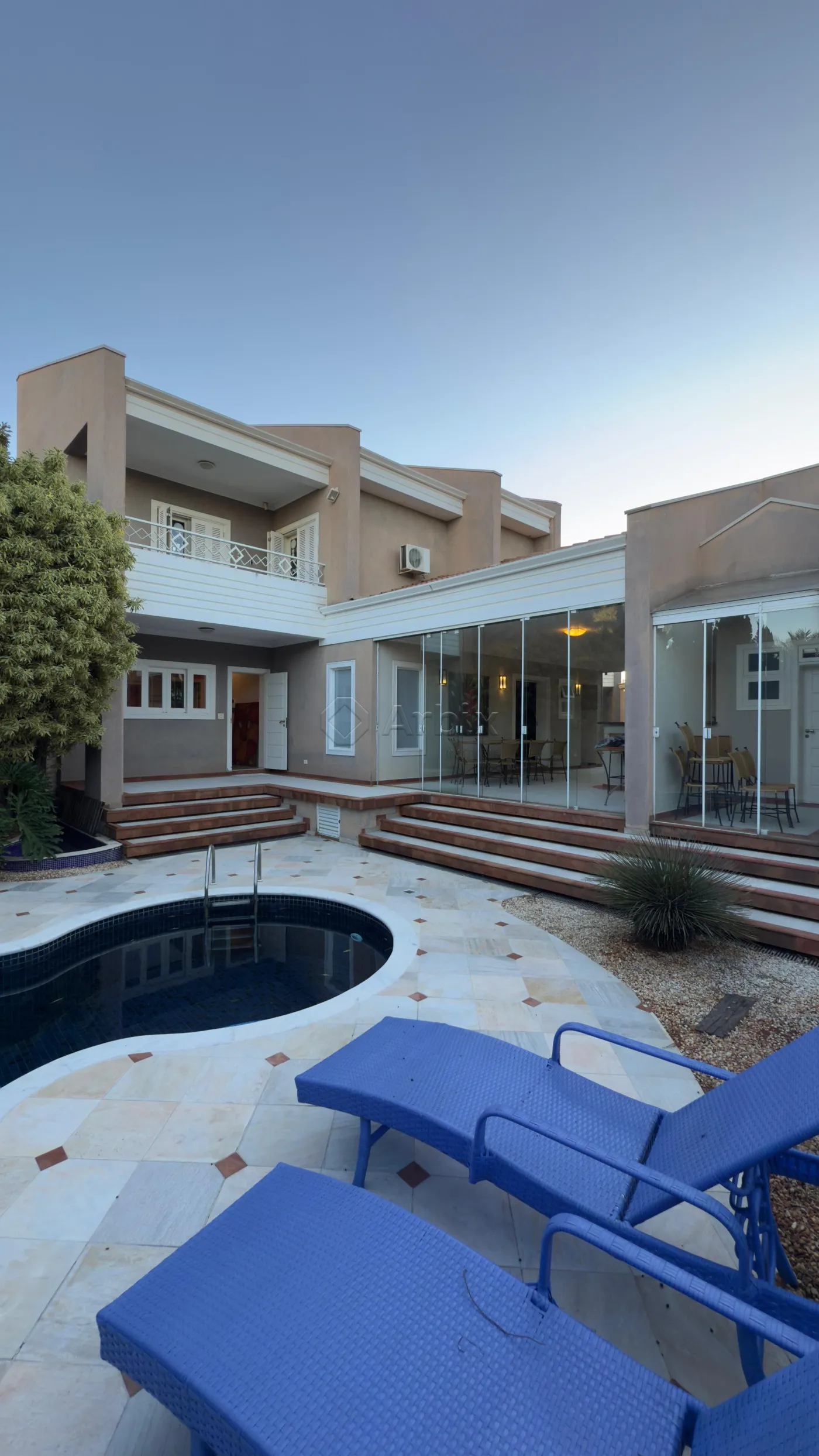 Esta casa oferece 693M² de terreno e 505M² de construção, possuindo ampla sala de estar e de jantar integradas, cozinha toda planejada, espaço gourmet com churrasqueira, piscina e área de serviço.