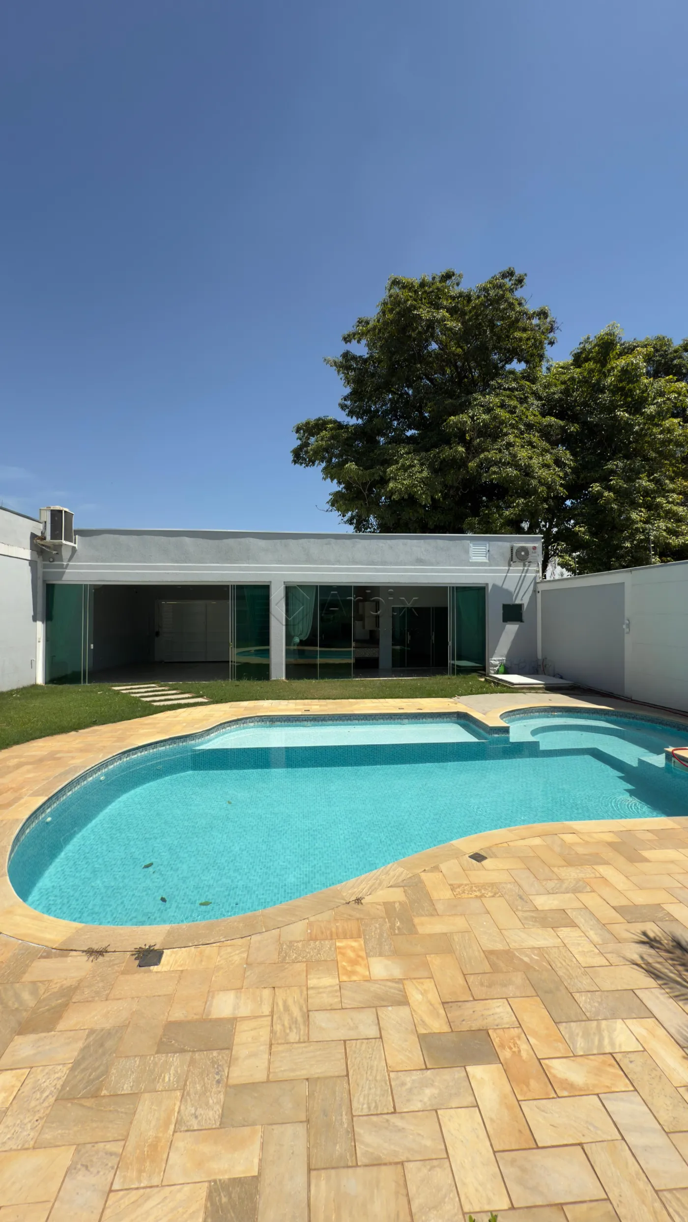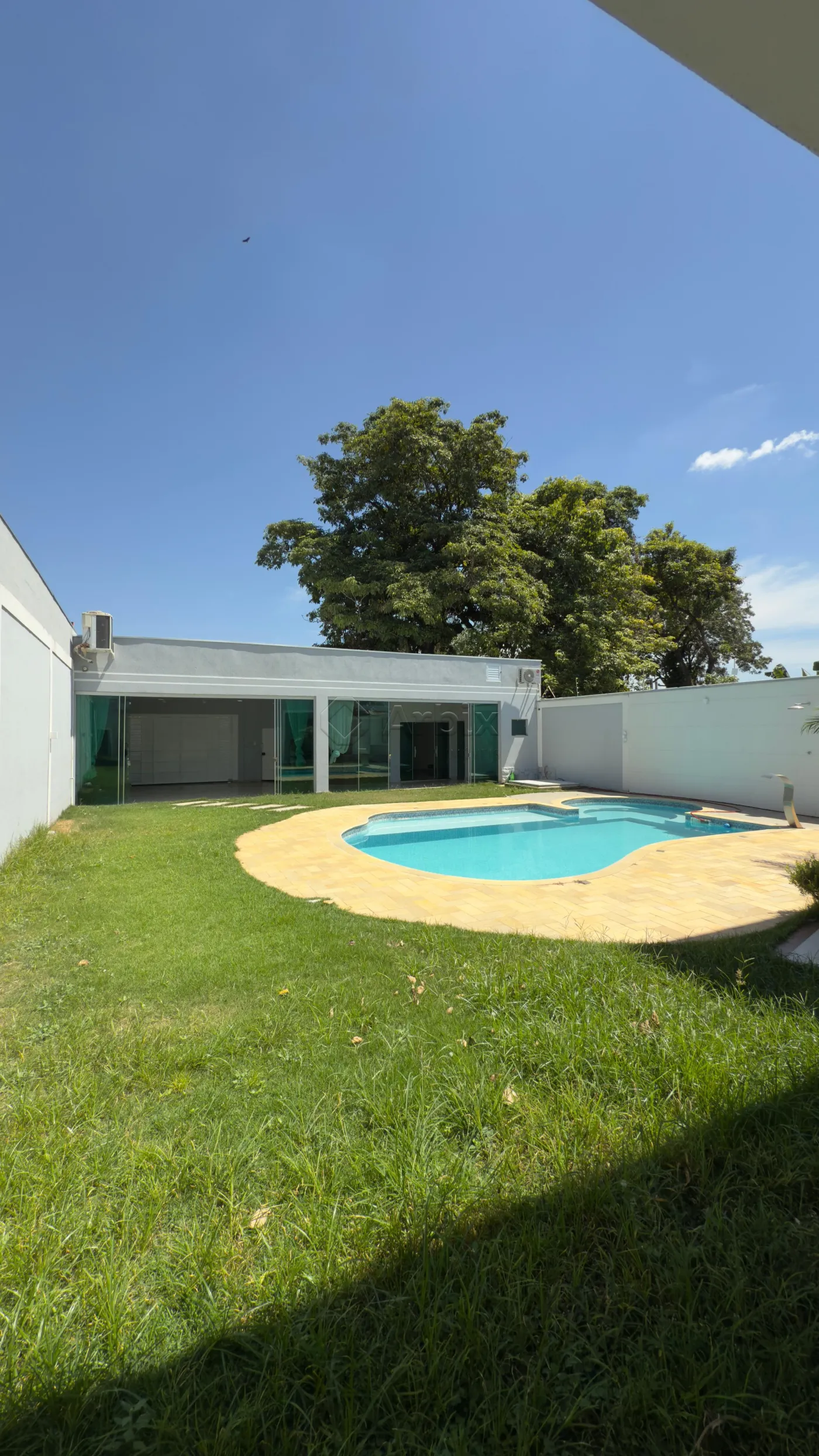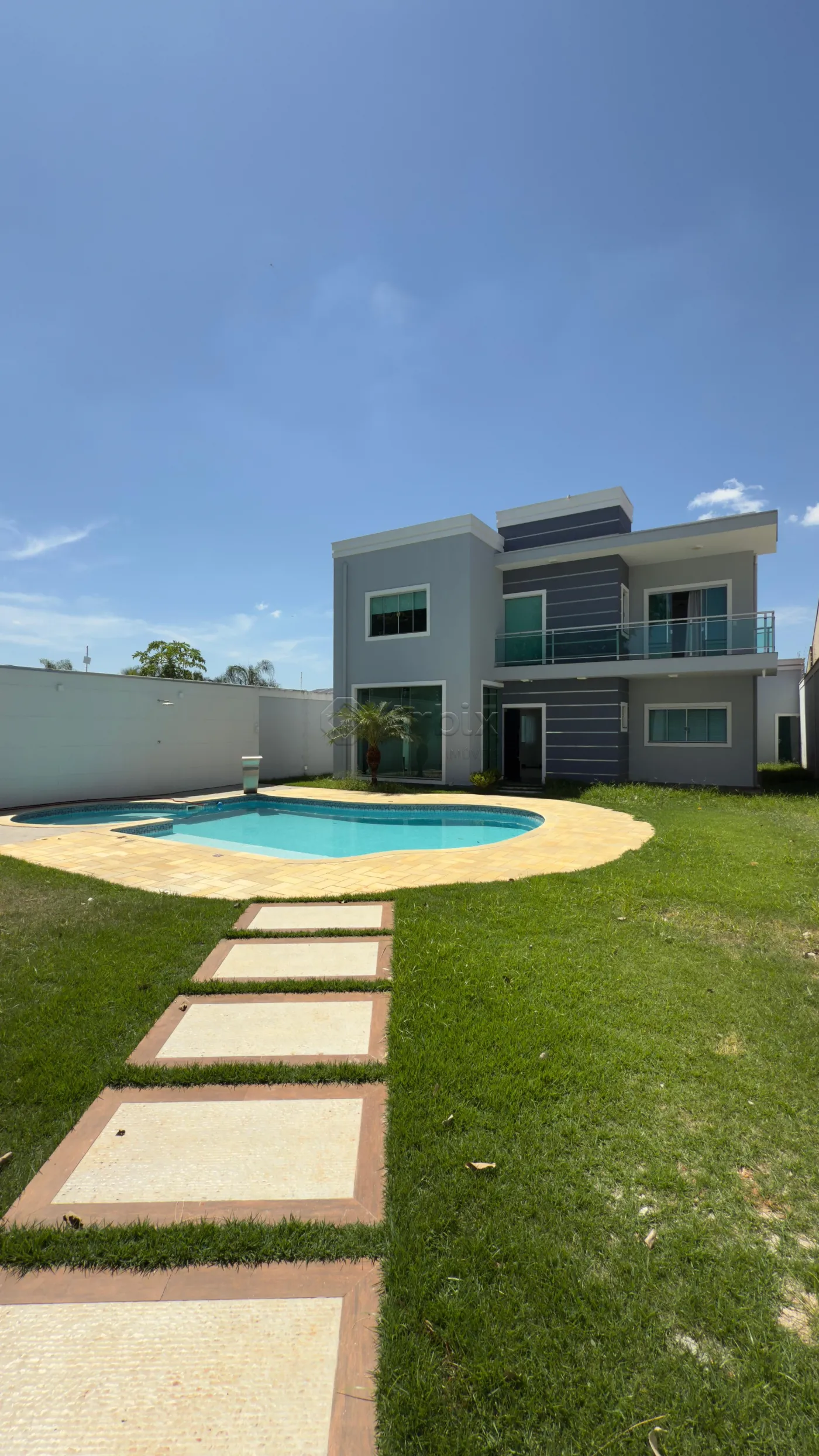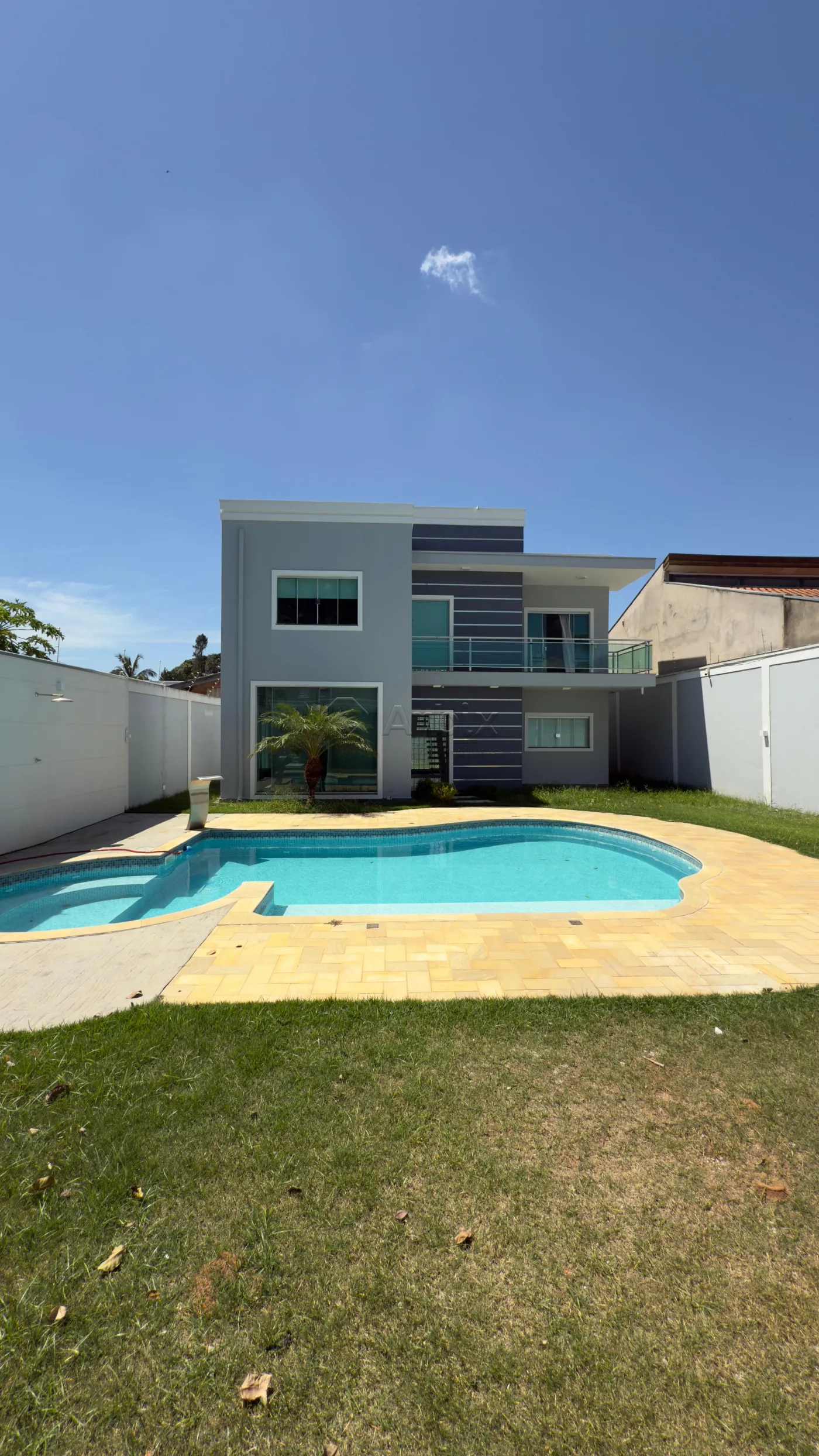 Este sobrado possui 560M² de terreno e 273M² de construção, oferecendo ampla sala de estar e de jantar integradas, cozinha planejada, despensa, espaço gourmet com churrasqueira, piscina, quintal extenso e gramado, e área de serviço com portas em blindex.