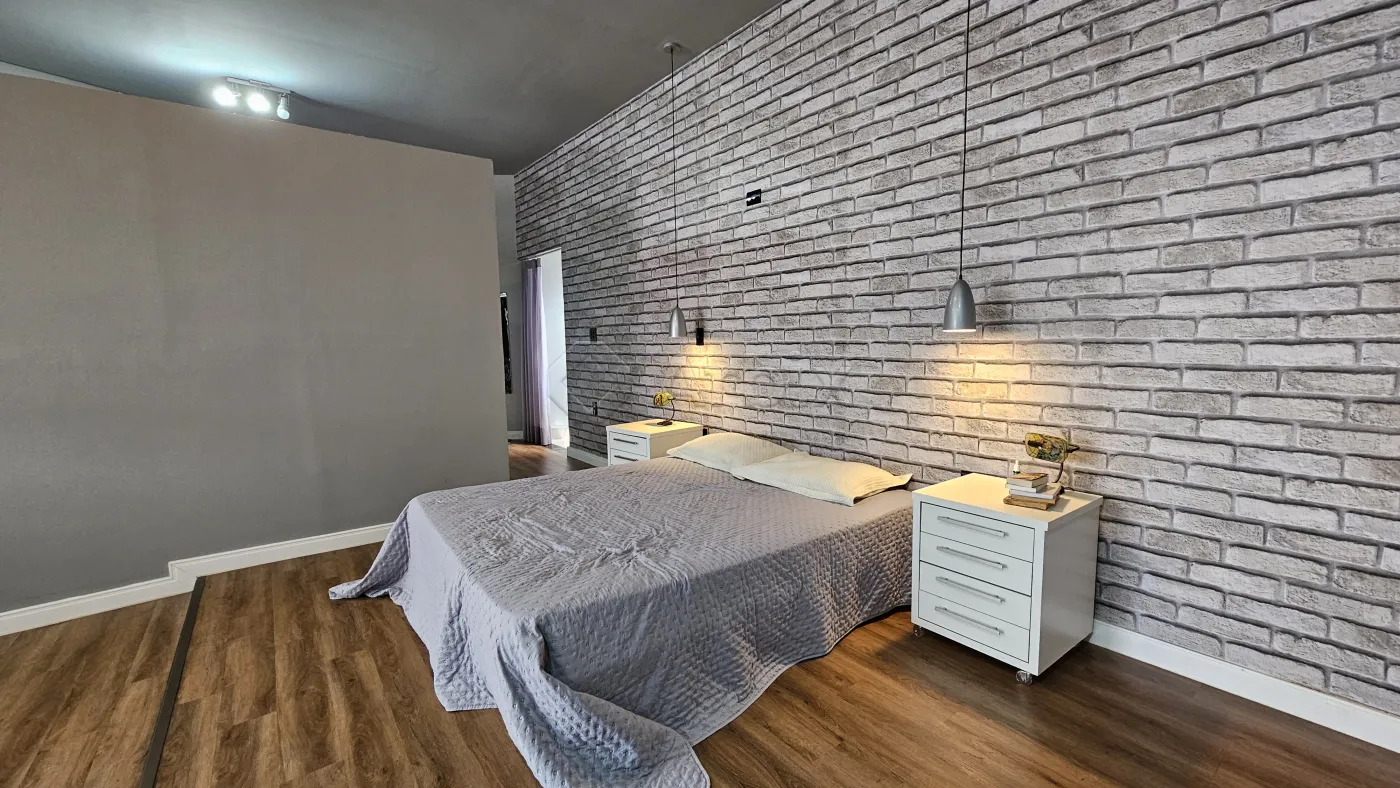 O imóvel com 172M2 de terreno com de 94,85m² de construção, amplo espaço aberto, cozinha, sala e quartos integrados com closet, com banheira jacuzi, área aberta com churrasqueira, e mais uma dispensa em área externa e vaga para um carro.