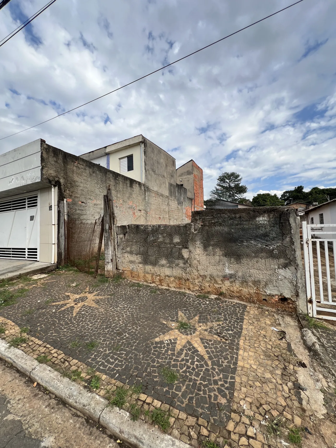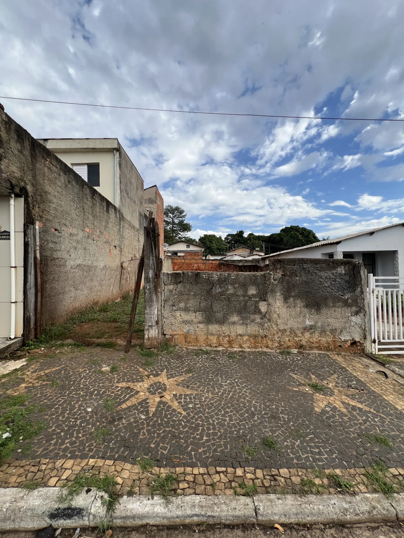 Este terreno conta com 150M², oferecendo uma ampla área plana e murada em volta, além de possuir outras casas ao redor.