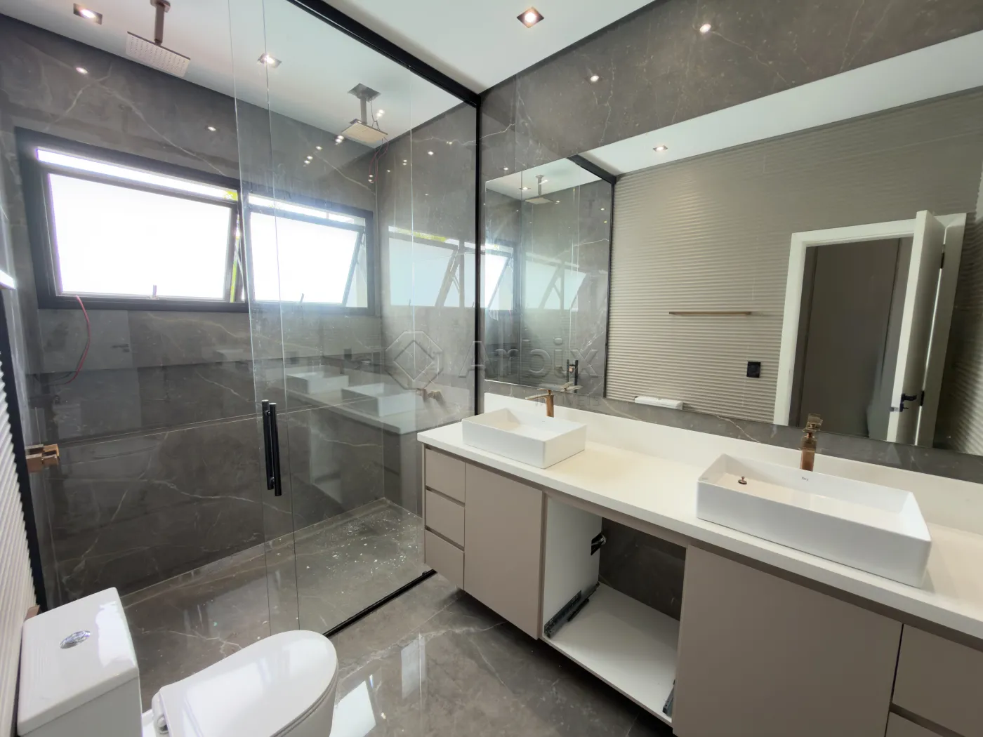 Na área íntima, o imóvel dispõe de 04 suítes, com destaque para a suíte master, oferecendo conforto e privacidade em alto padrão. O conjunto é complementado por 07 banheiros, incluindo lavabos e apoio externo, atendendo com excelência às demandas do imóvel.