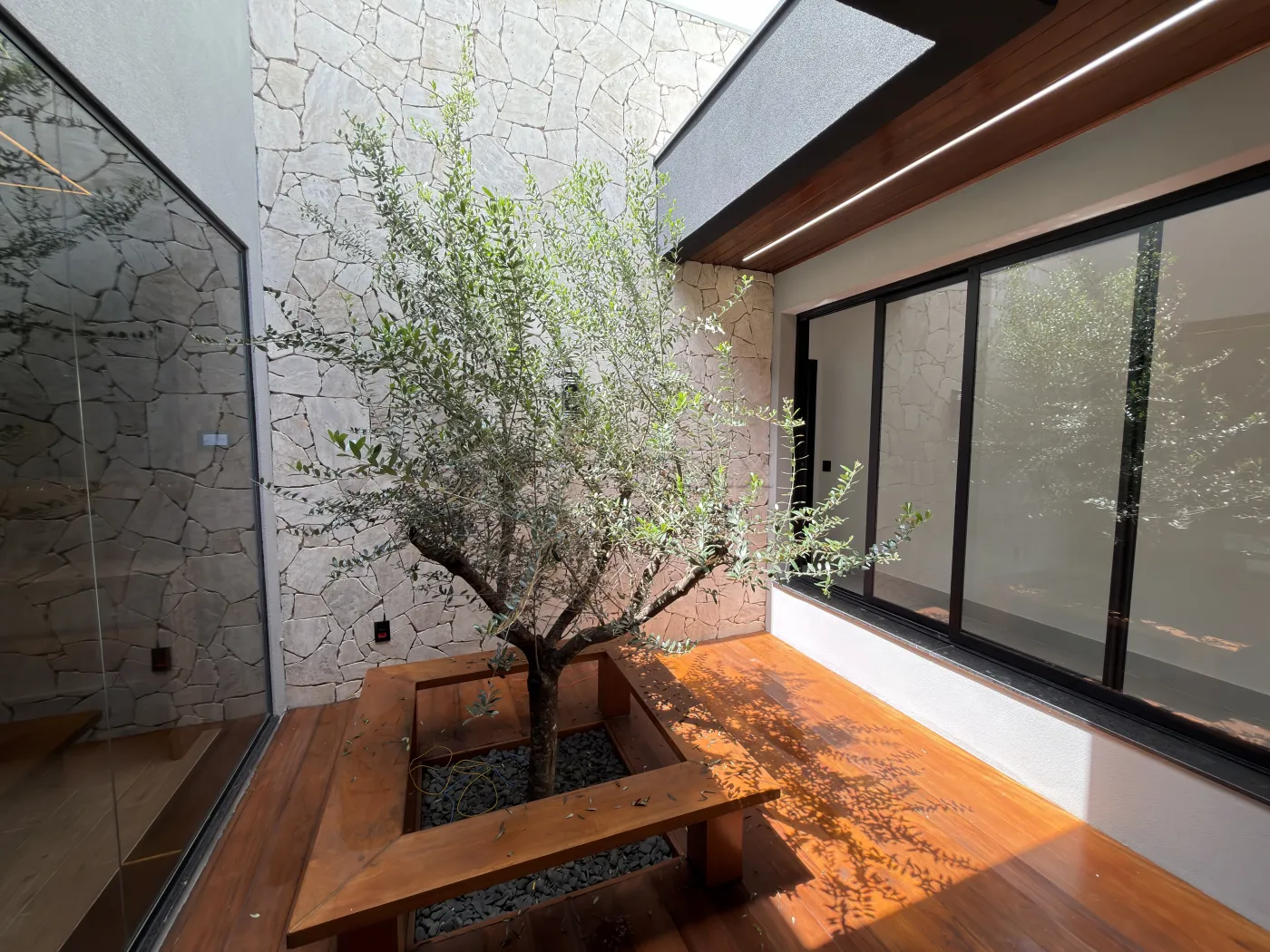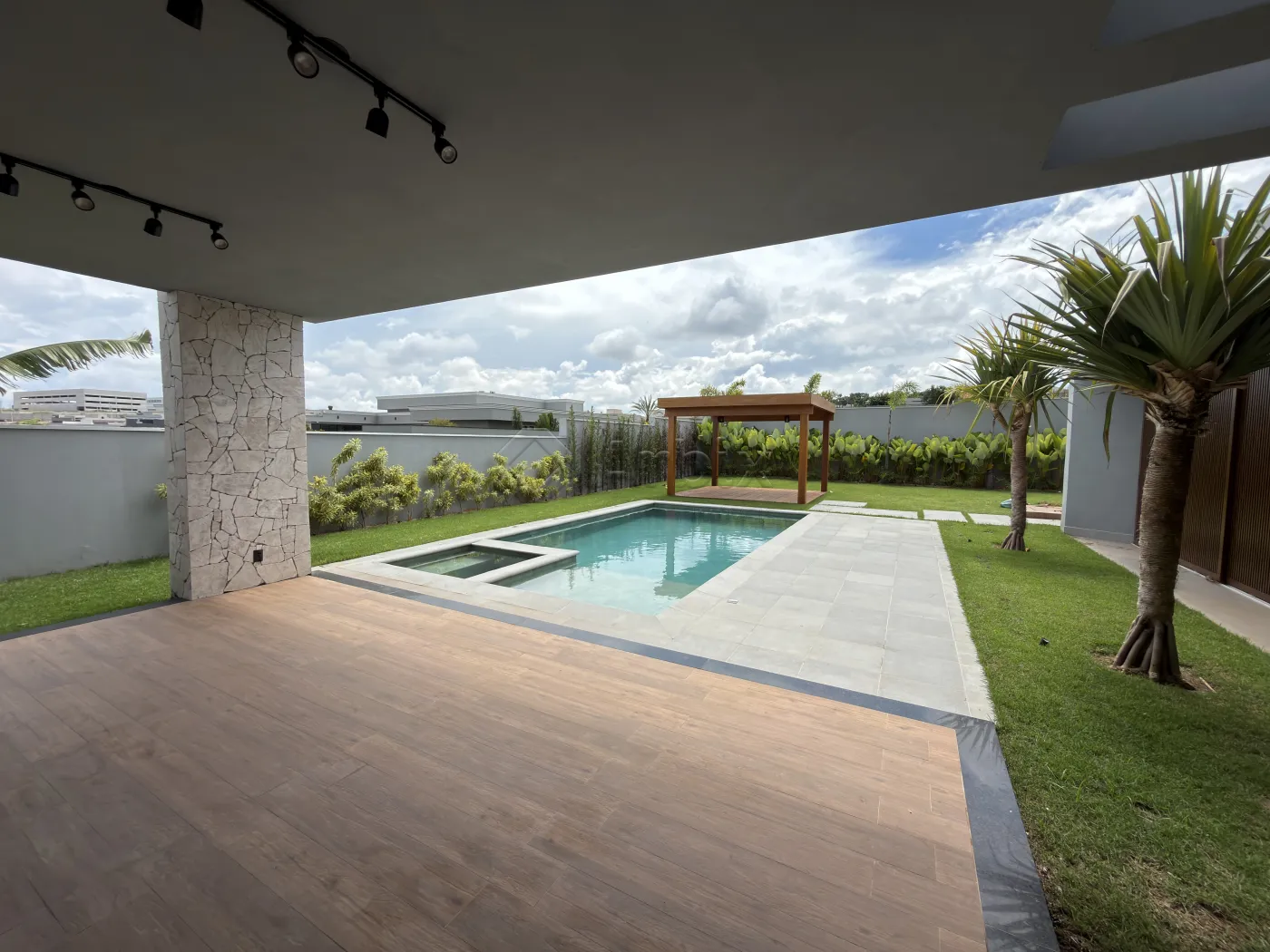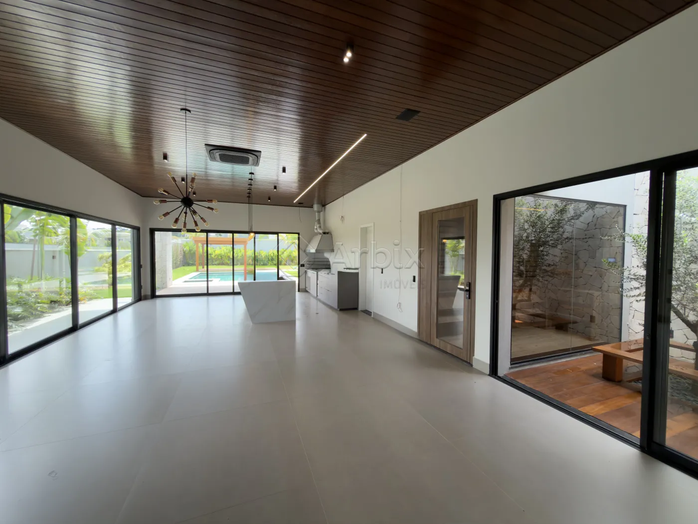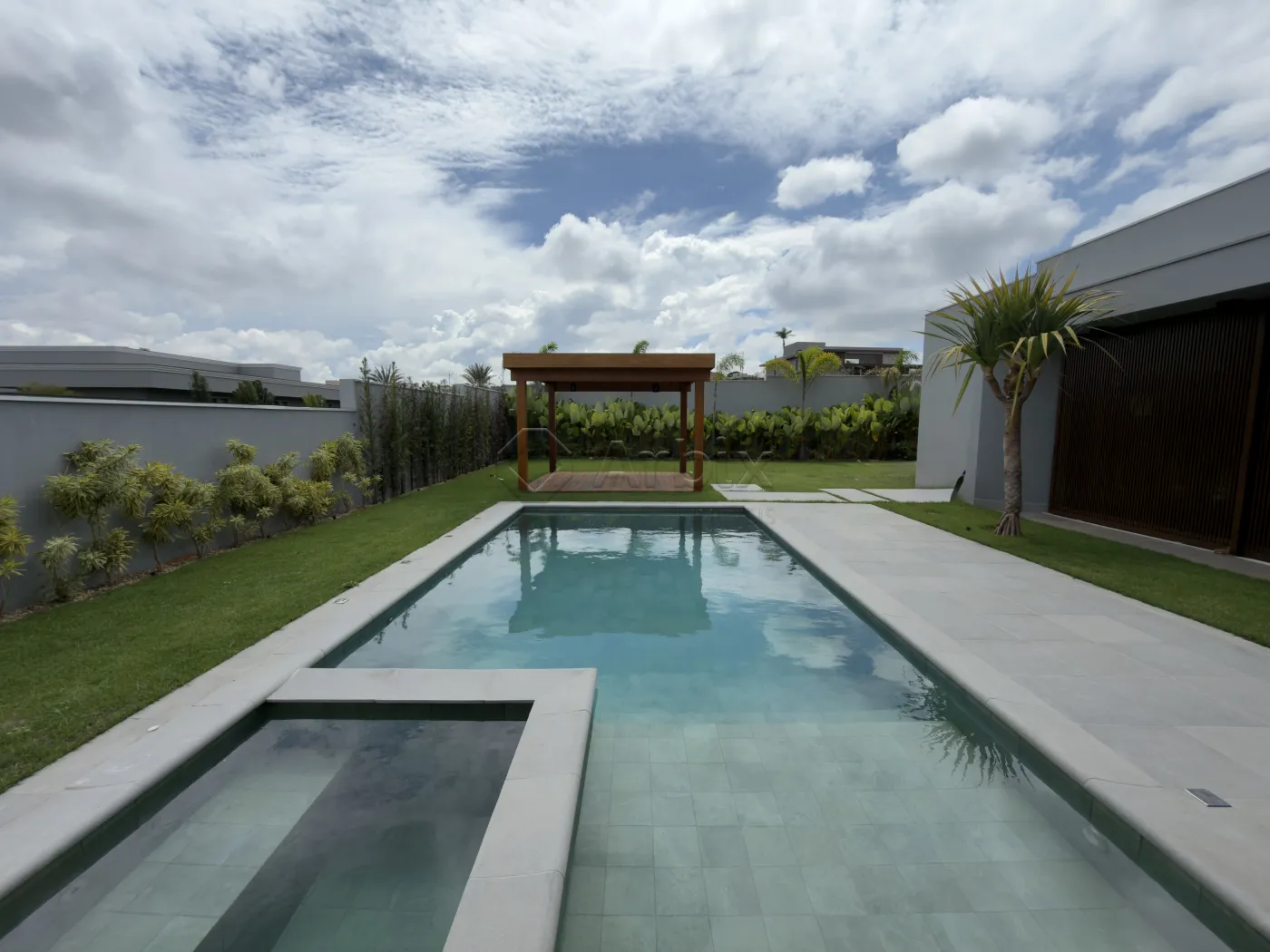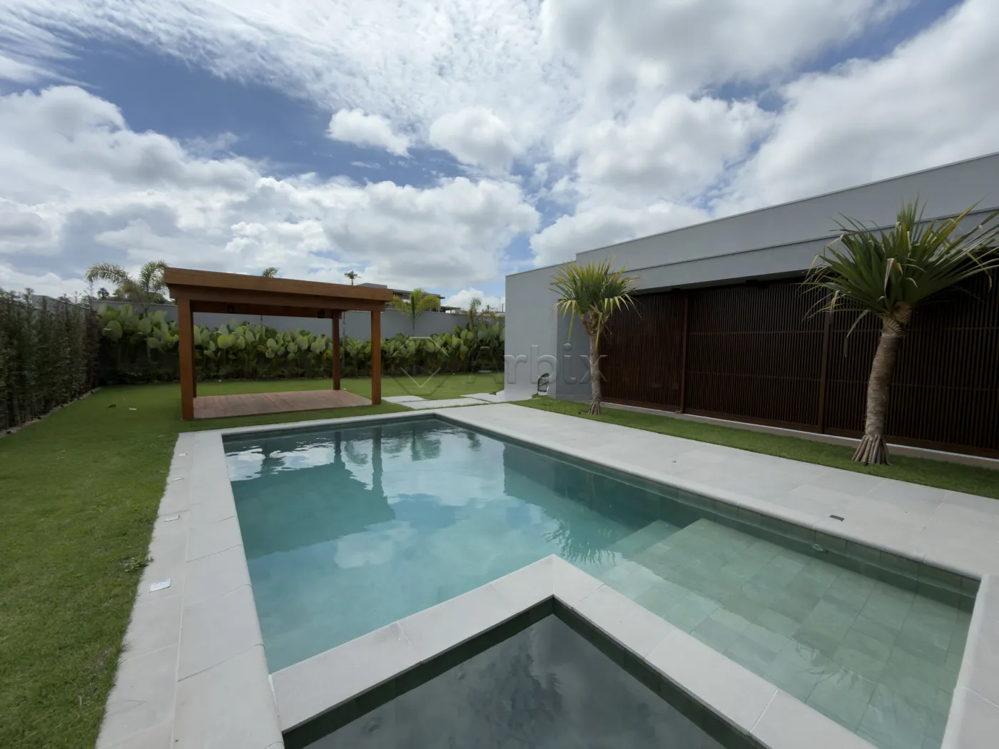 O imóvel conta ainda com jardim de inverno, que agrega elegância e luminosidade aos ambientes internos, e uma área externa completa, com piscina aquecida com hidromassagem, extenso quintal gramado, pergolado e área de serviço coberta, compondo um cenário ideal para lazer e recepção.