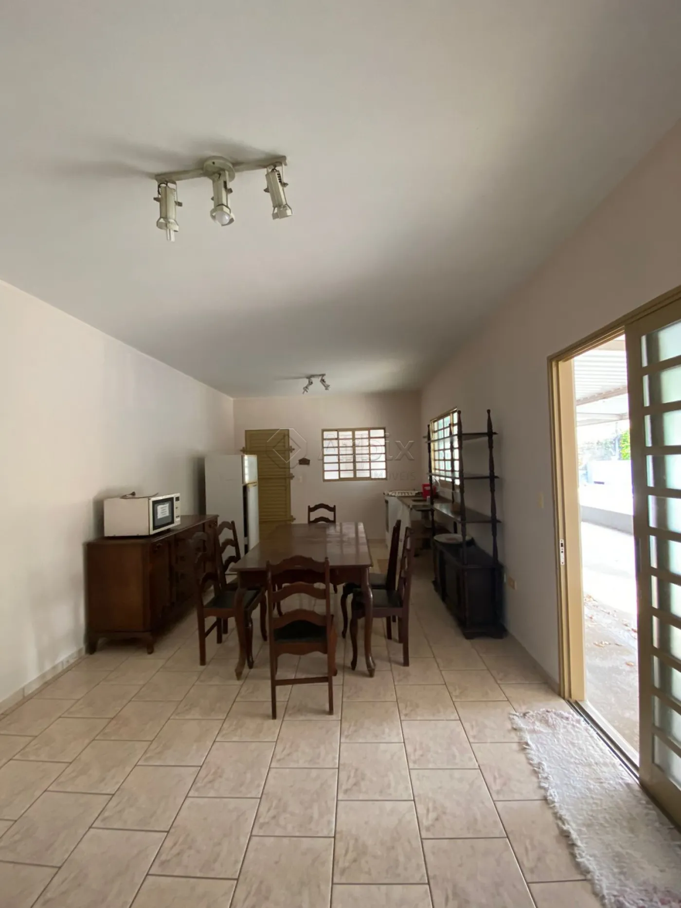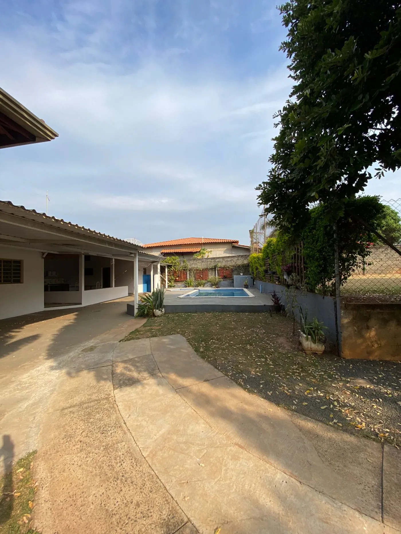 O imóvel conta com armário em 01 dos dormitórios, sala e cozinha conjugadas tendo 01 fogão, geladeira, mesa. área de serviço coberta, churrasqueira, campo de futebol e uma ampla área verde com jardim e piscina.